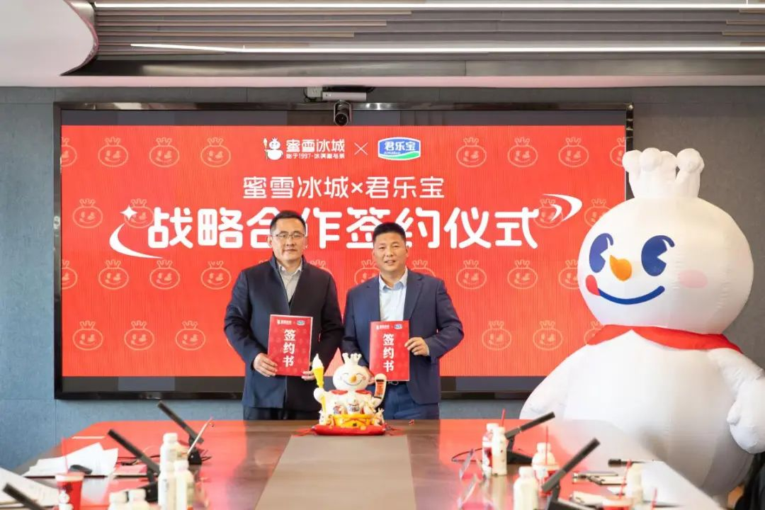 近日,蜜雪冰城集团与君乐宝乳业集团计谋配合签约庆典在河南郑州到手举行。蜜雪冰城总司理时一又、君乐宝乳业集团副总裁侯新峰代表两边签署计谋配合左券。